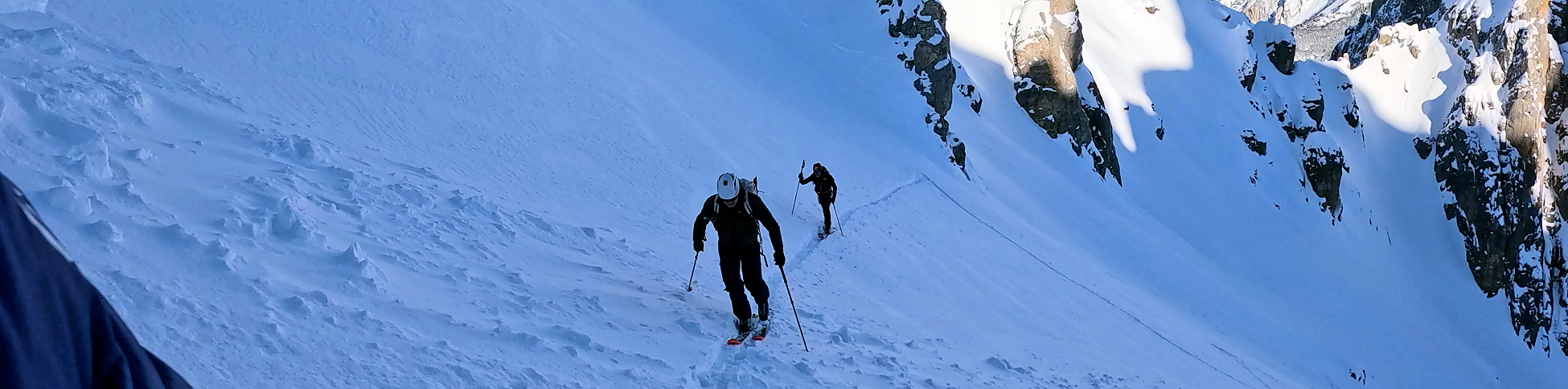 Vous serez encadrés par des personnes diplômées (guides de haute montagne, moniteurs de ski ou initiateurs ski-alpinisme).