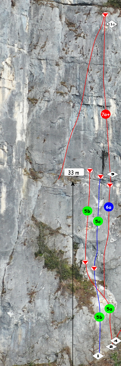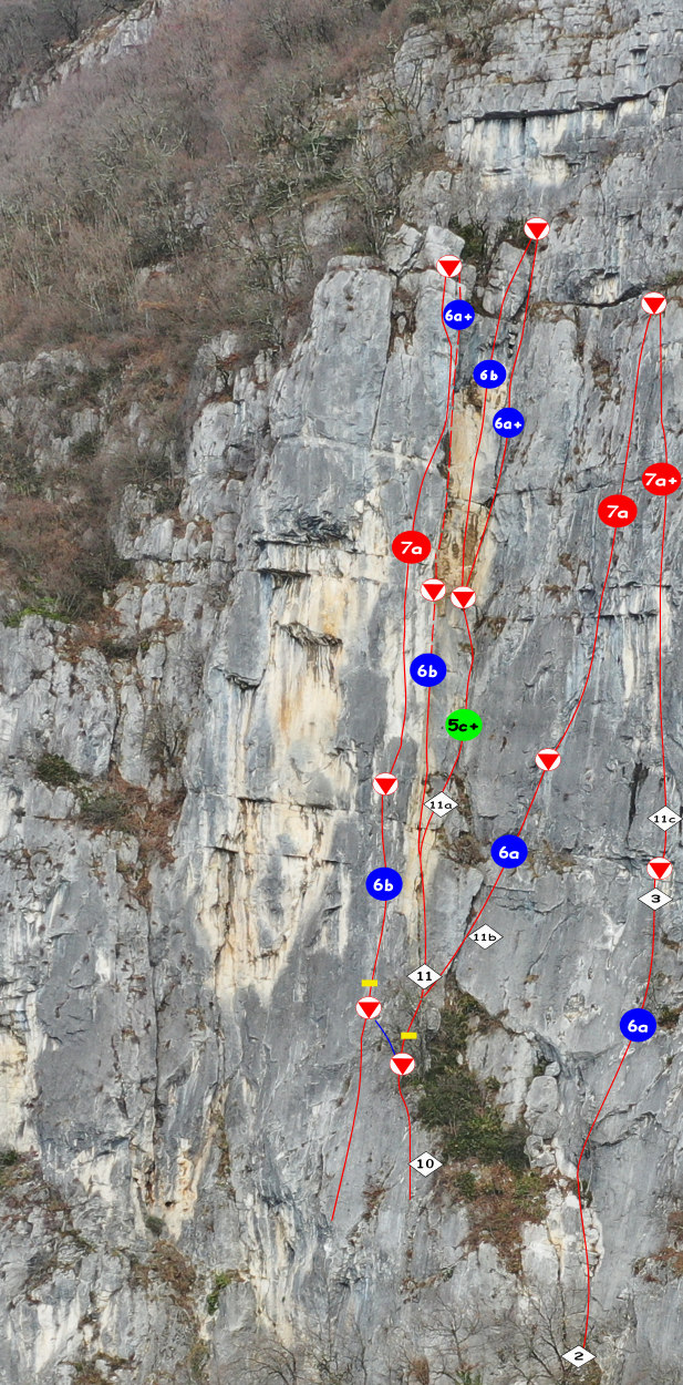 Voie n° 11 c : une grande longueur 40M 7A+ Départ par le 6a.