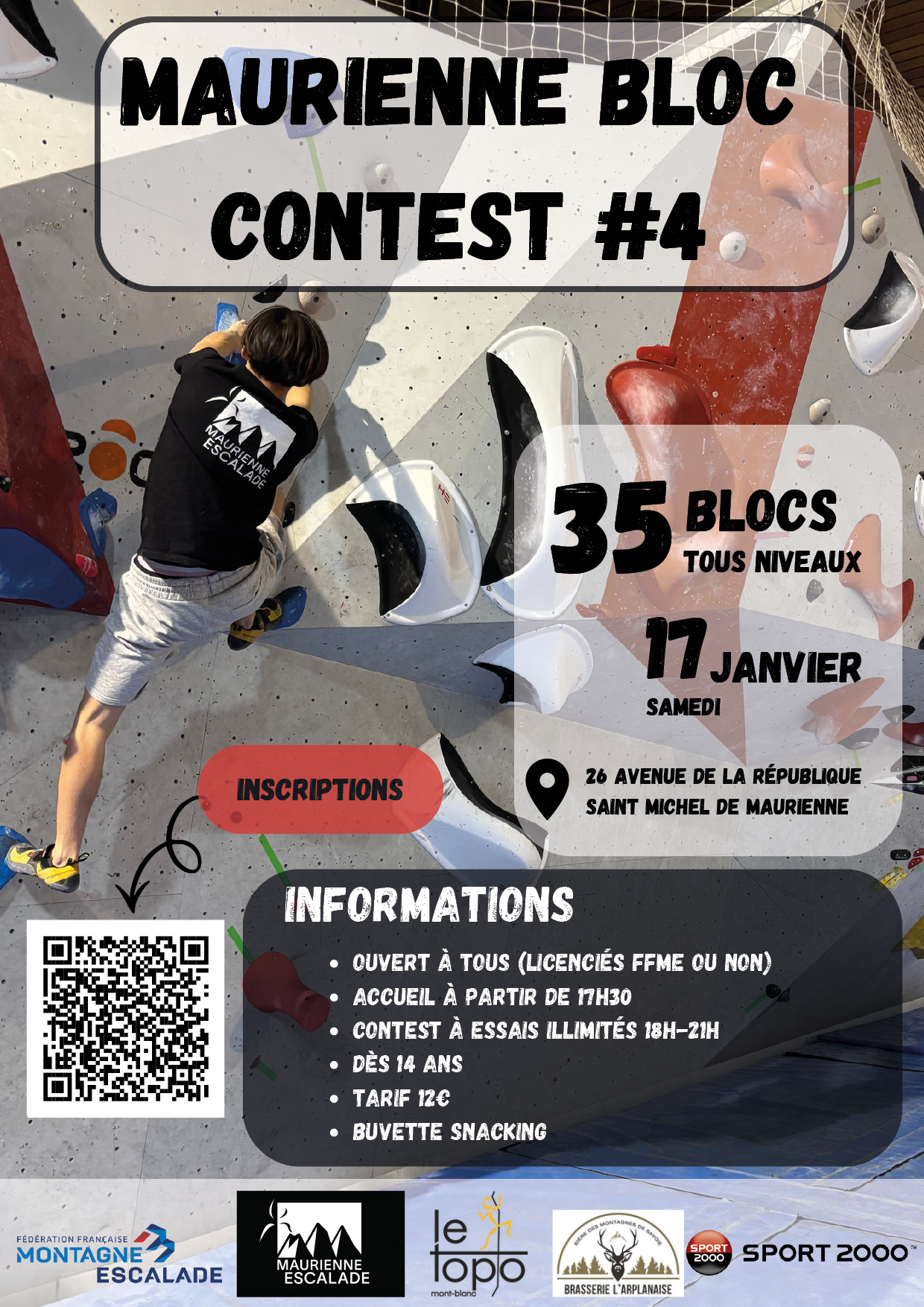 Dernière chance ! Venez grimper sur le mur de bloc de Saint-Michel-de-Maurienne avant les travaux du gymnase, qui entraîneront une fermeture de 2 ans.